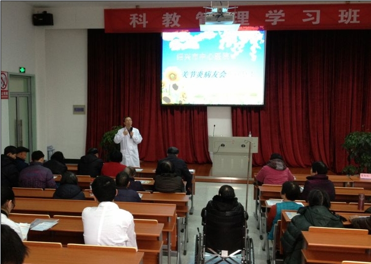 3月4日下午,由我院血液風濕科組織籌辦的紹興市中心醫(yī)院首屆關節(jié)炎病友會在四樓階梯教室舉行。來自周邊地區(qū)的數(shù)十位關節(jié)炎患者及患者家屬慕名參加。